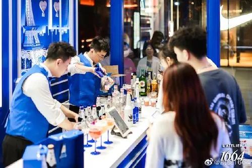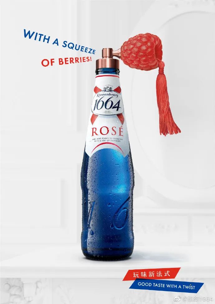 无论是概念玩法还是实际场景搭建上,1664都设计得较精致。夹在洋酒和啤酒的中间,有一定仪式感却又不厚重。也可以说,在所有操盘过程中,1664并没有将产品单纯看作啤酒。它更像是生活情趣、浪漫的象征。红酒、洋酒、鸡尾酒种种玩法,都能转化到1664的营销形式中。