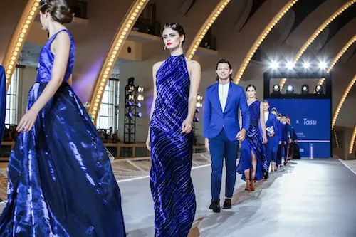 除了品牌展位、产品融入等常规曝光外,1664特邀法国设计师以品牌色法蓝为灵感,推出高定时装。在法式晚宴、品酒会后,1664法蓝秀压轴开幕。