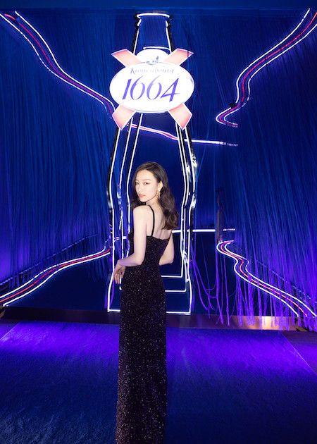 一些中奢品牌前两年也曾将秀场打造成情景剧。模特用一种反T台的走秀,诠释时尚和品牌的个性。1664无意中将这个概念提早了几年。Vogueme明星派对是时尚行业的年度盛事之一,1664连续两年,拿下了它的赞助权。当品牌代言人倪妮身着星光高定礼服走上红毯;1664及其标识性的小蓝瓶,以赞助者、氛围担当、派对QUEEN等不同角色融入现场,赞助目的也有了最大化体现。赞助Vogueme明星派对,代言人倪妮出席