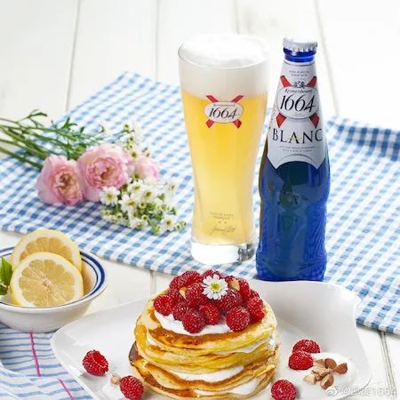 这时就不得不提到白啤,人们印象中的“精酿=高端”也好,“啤酒是好喝的”也罢,都绕不开它。白啤也是国内卖的最多的精酿之一,品牌的第一批精酿里总有它。(白啤里添加有小麦芽)1664白啤,正是它的经典款。也就是说,品牌的成功是踩在白啤受欢迎的基础上。更多产品