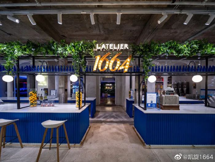 借此,1664不仅放大了品牌色标识度,也为自己的法蓝色注入艺术价值。小蓝瓶的时尚性与艺术感螺旋上升,品牌也能更好地用流量和文化两条腿走路。 三、