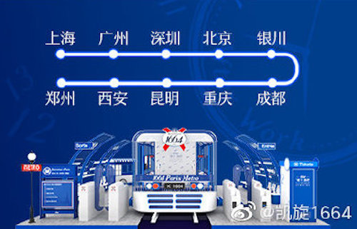 第二年,1664在创意中更加强化了下班场景。现场整体布置成巴士空间,创意也在里里外外强调着「到点就要准时开始」。