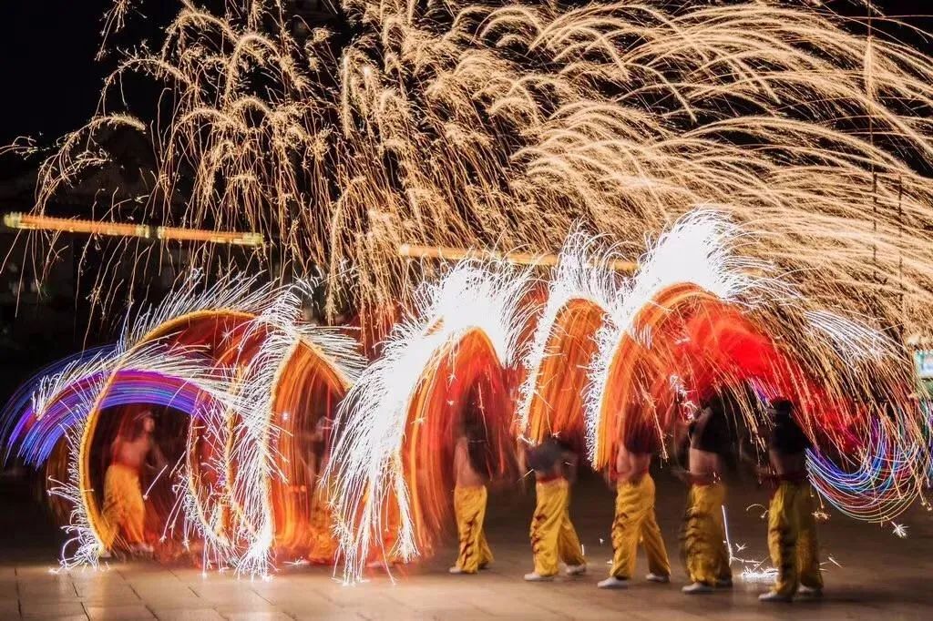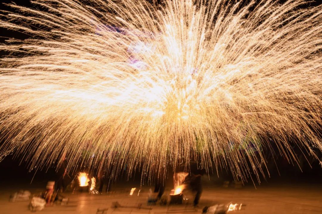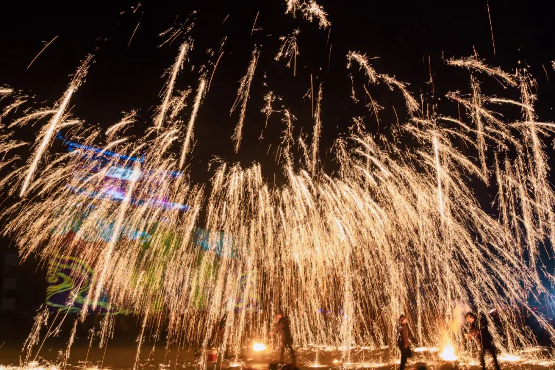 内容:兵部分司门前身怀绝技的非遗匠人棒中的铁汁一击冲向天空迸散开来,铁花飞溅、流星如瀑、声震天宇,铁水变烟花。这是独属于中国人1600度的浪漫,配合上下翻腾的火龙,千年绝技迎盛世龙年!