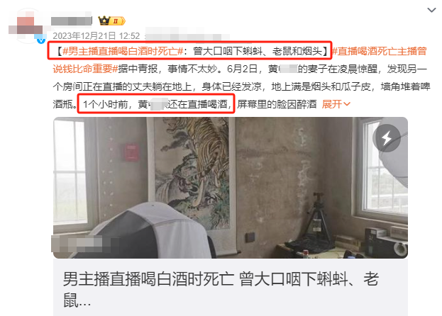 记得就在去年,就有两位网红主播(王某、黄某),因“酗酒”相继去世。