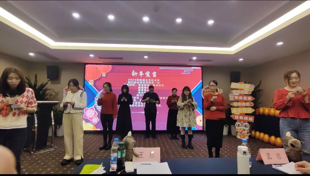 最后压轴发言的是副总经理王丽刃王总,王总首先向新员工特别介绍了运营中心的作用以及任务,同样也再次强调了2024年对全公司的目标和期望。王总呼吁大家--做最好版本的自己,提升自己,提升自己的学习能力,有目标并且向着目标前进,制定计划一步一个脚印地往前走。坚持计划,坚持目标,保持初心,带着勇气尽自己最大的努力去完成计划实现目标,这样在今后的日子里回想起来的话才不会后悔。最后祝愿全员能够在新的一年里生活幸福美满,身体健康,业绩能够蒸蒸日上,再创辉煌!