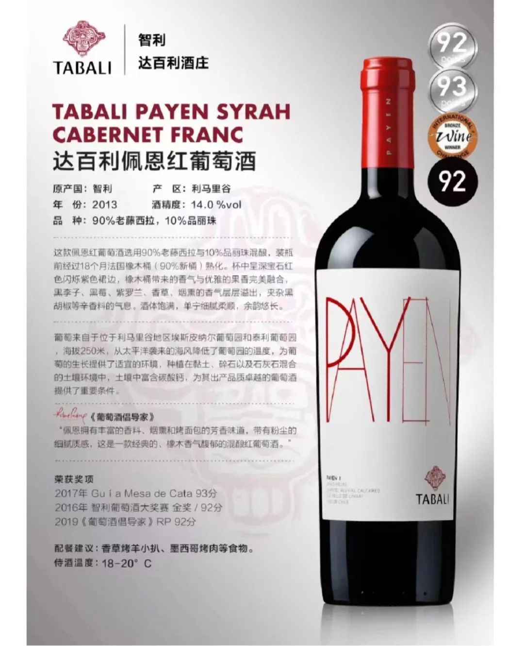 第二款:达百利佩恩。来自于智利首富的酒庄 :达百利铜王(智利首富卢克斯克酒庄,智利最好的十大酒庄)评分93分。