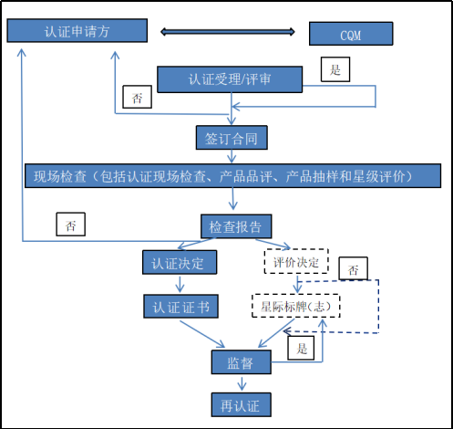认证模式:现场检查(包括认证现场检查、产品品评)+产品检测+获证后监督;认证环节:包括申请与受理、现场检查(包括认证现场检查、产品品评和星级评价)、产品检测、认证决定、监督、再认证、扩大认证范围、获证后管理。啤酒工坊/工坊啤酒厂星级评价是在通过工坊啤酒产品认证的基础上进行星级评价,共分为5个星级,分别为五星级、四星级、三星级、二星级、一星级。