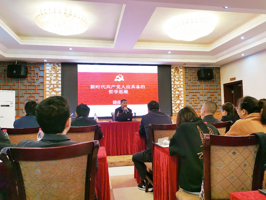 本次活动还特别邀请遵义师范学院马克思主义学院,思想政治教育教授陈保健为大家作以“新时代中国共产党人应具备的哲学思维”为主题的党课培训,进一步发掘先进思想中的哲学意蕴,提升党性认识和思维能力。