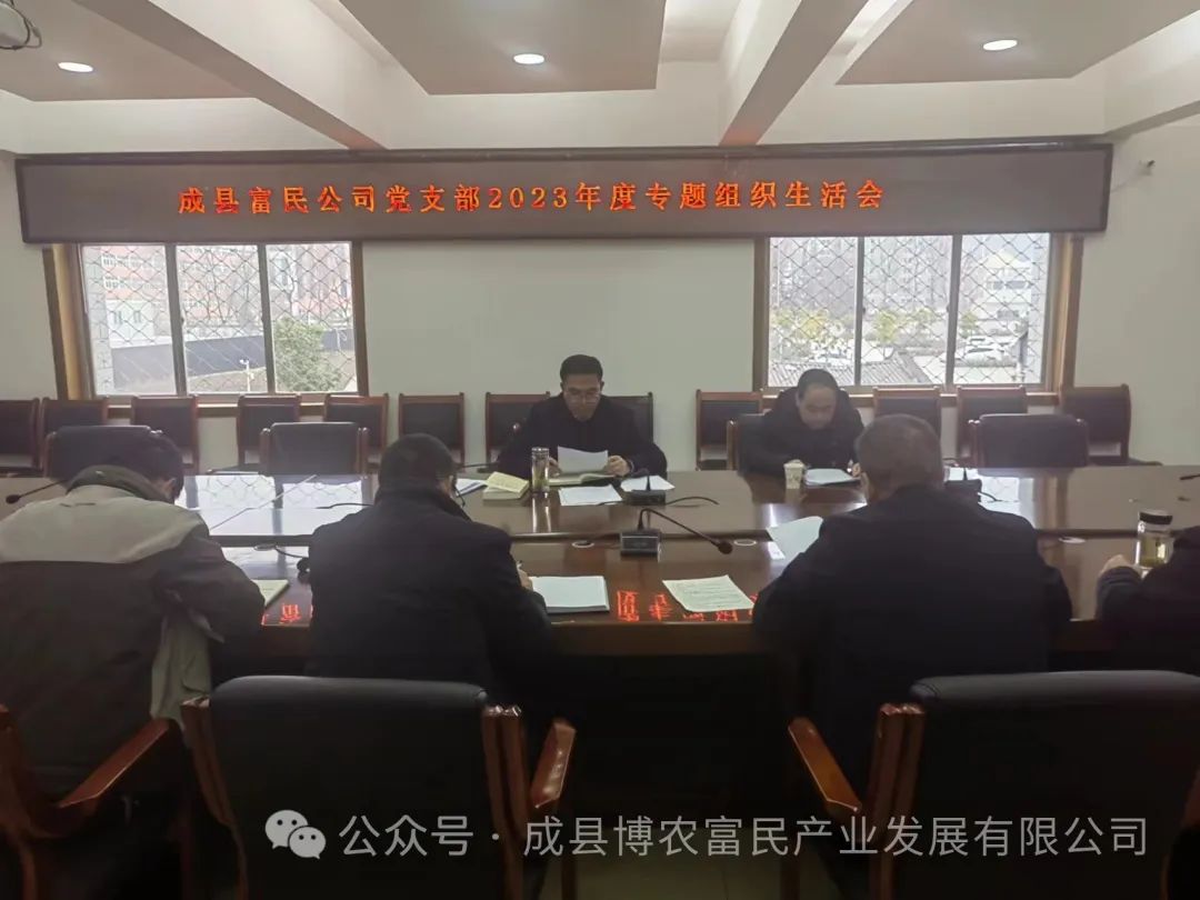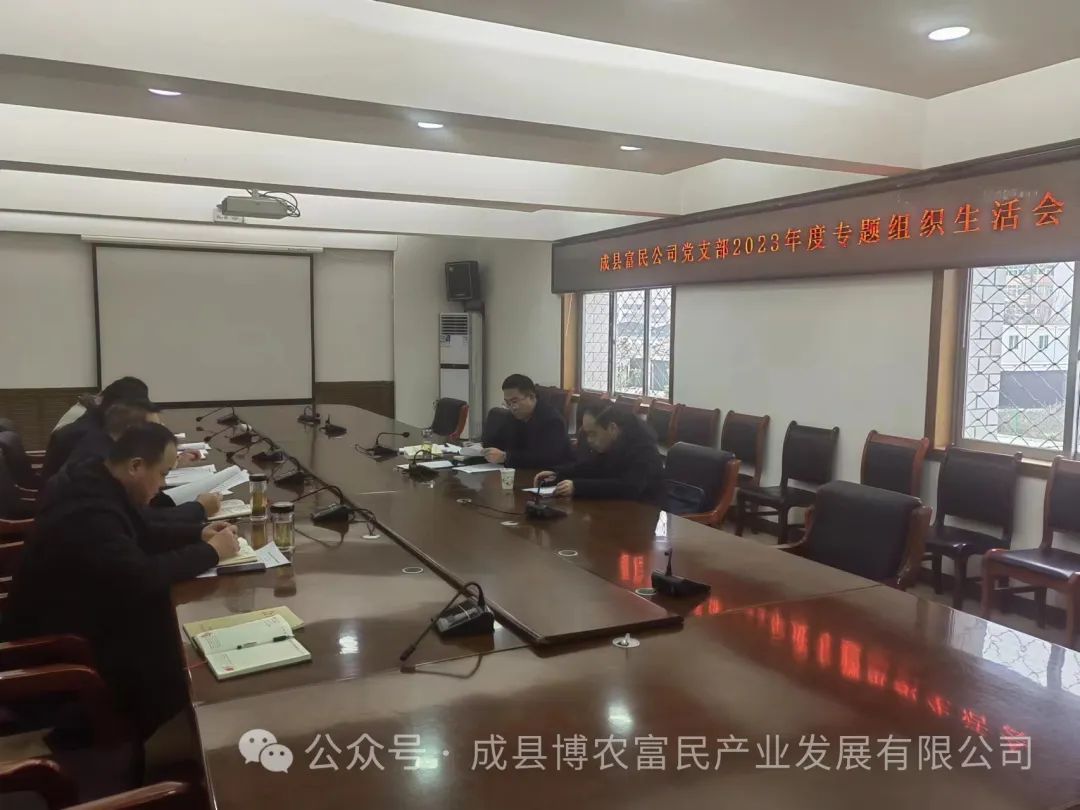 成县博农富民产业发展有限公司党支部于2024年1月16日下午召开了2023年主题教育专题组织生活会和民主评议党员大会,成县县属国有企业党总支纪检委员张永涛同志出席会议并进行点评指导。会议由成县博农富民产业发展有限公司党支部书记台社勇同志主持,支部党员和公司干部职工参加了会议。