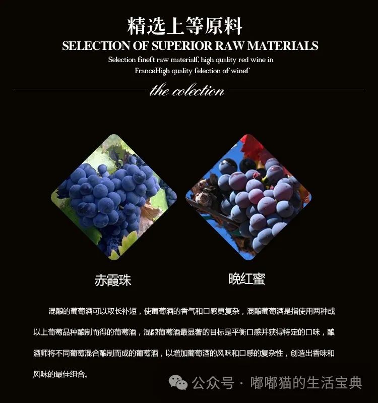 混在一起形成了风格多变又回味无穷味道。另外,赤霞珠干红具有酒精度偏高、单宁厚重的特点。