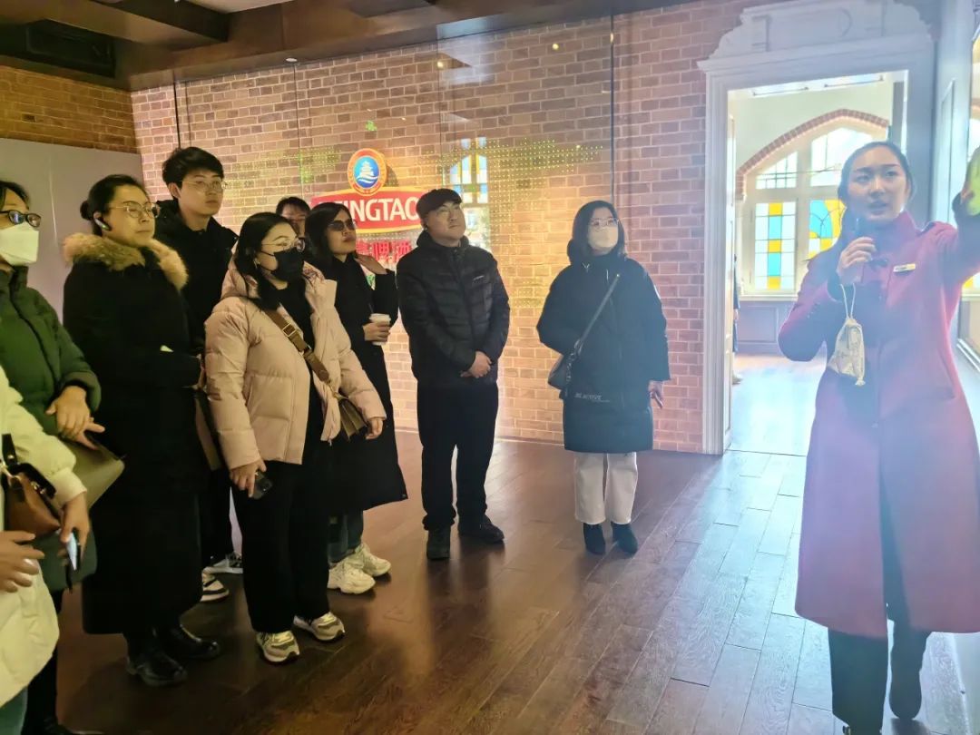 为挖掘知名企业文化,深入了解岛城工业传承,创新课堂育人新思路,基础教研部组织部分教师于1月15日上午到青岛啤酒博物馆参观研学。基础教研部负责人孙治国、副职翟松辉,公共英语教研室负责人赵苗苗带领教师了解百年青啤,见证技术迭代,收集教学素材,促进基础学科教学革新。