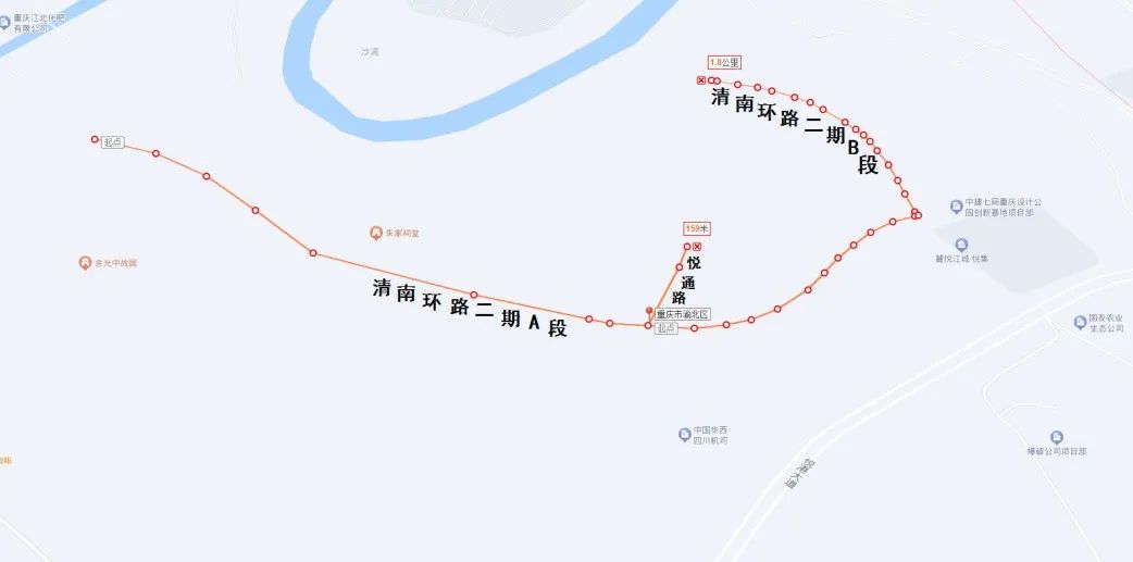 清南环路二期(滨江路—悦智路段)起点平交悦来滨江路(创艺城段),终点平交悦智路,共分为两段,总长约1.78km,设计速度40km/h,为环形道路。