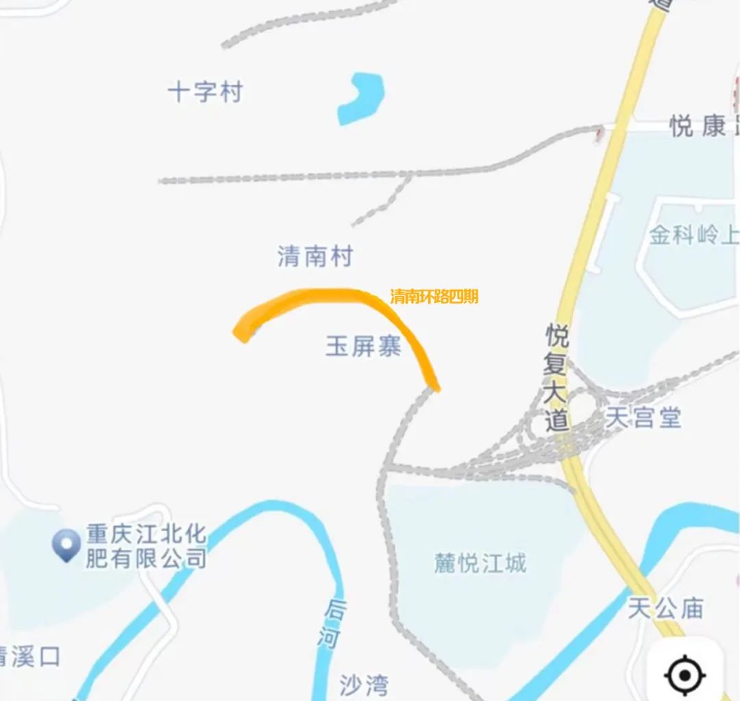 清南环路一期位于悦来创艺城悦清大道清溪河大桥西侧,南端与悦智路平交,横跨后河北侧连接麓悦江城。项目全长约440m,其中桥梁部分338m,为城市次干路,设计车速40km/h,双向四车道。