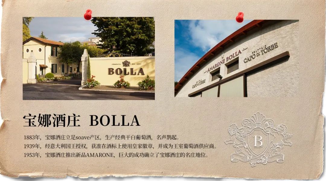 1883年,宝娜酒庄立足soave产区,生产经典干白葡萄酒,名声鹊起。1939年,经意大利国王授权,获准在酒标上使用皇家徽章,并成为王室葡萄酒供应商。1953年,宝娜酒庄推出新品AMARONE,巨大的成功确立了宝娜酒庄的名庄地位。