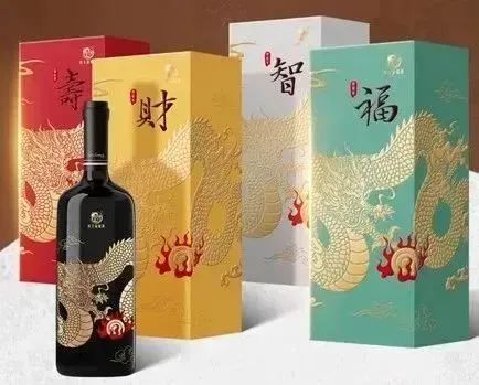 威龙推出的龙年生肖纪念酒,集“中方黄”、“东方青”、“南方赤”、“西方银”四方神龙,收“财”、“福”、“寿”、“智”四样祝福呈祥瑞好礼。