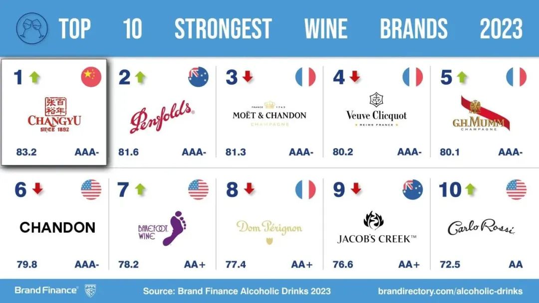 2023年7月,在全球权威品牌价值评估机构Brand Finance发布“2023全球最强葡萄酒&香槟品牌”榜单中,张裕斩获“2023全球最强葡萄酒&香槟品牌”第一名。