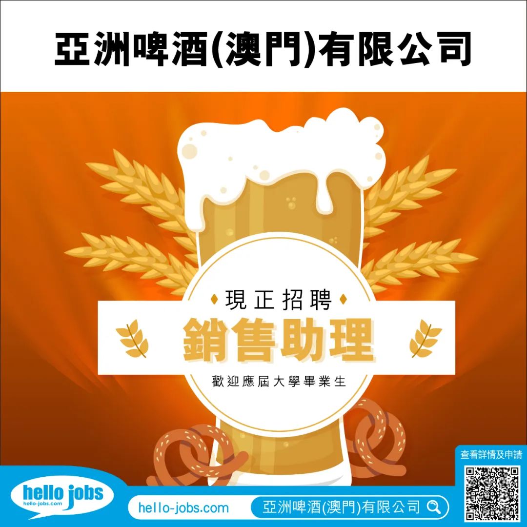 本公司提供14個月薪金及年終獎金,一周五天工作,1.5小時午休時間及政府假,並設有健康獎及節日福利等,薪金面議,有意應徵者,電郵個人履歷及要求待遇至: ansonho@asiabrewery.com.mo (收件人)何先生,諮詢電話28533083。