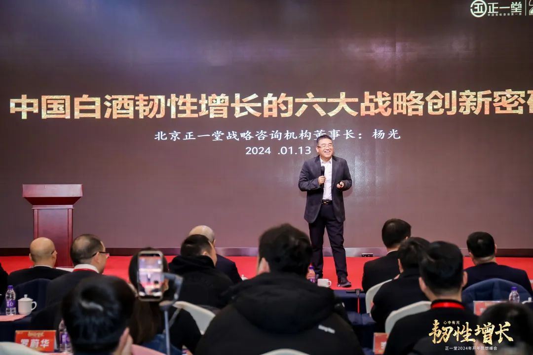 1月13日,以“心中有光 韧性增长”为主题的正一堂2024年开年思想峰会在北京举行。会上,正一堂堂主杨光作主题演讲——《中国白酒韧性增长的六大战略创新密码》。他认为,酒业2024年的关键词是韧性,并通过六大战略密码解析企业如何实现韧性增长。顺应周期的能力