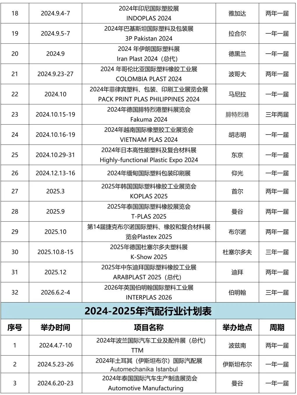 专委会秘书处为大家搜集了2024年海外塑料行业相关计划表,如有需要参展观展的企业可以联系秘书处报名。