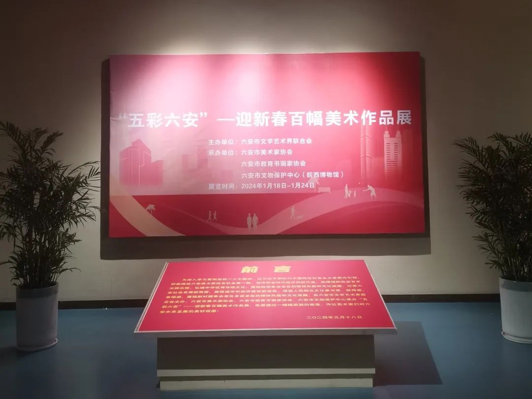 为深入学习贯彻党的二十大精神,以习近平新时代中国特色社会主义思想为引领,积极推动六安美术家投身社会第一线,创作符合时代进步的新作品,热情讴歌我党百年光辉历程,弘扬中华优秀传统文化,展现皖西革命老区的精神风貌和文化底蕴,记录六安社会发展新局面,展现城市和经济建设新成果,增强人民群众文化参与感、获得感、幸福感,展现新时期革命老区多姿多彩的精神风貌和文化底蕴,由六安市文学艺术界联合会主办,六安市美术家协会、六安市教育书画家协会、六安市文物保护中心承办“五彩六安”——迎新春百幅美术作品展在皖西博物馆展出。