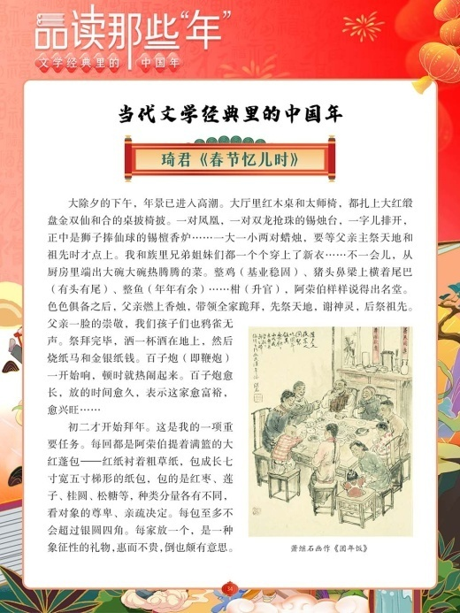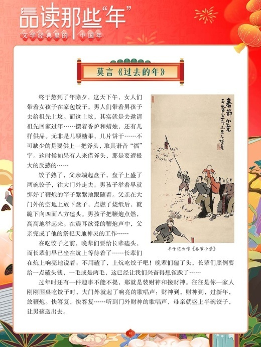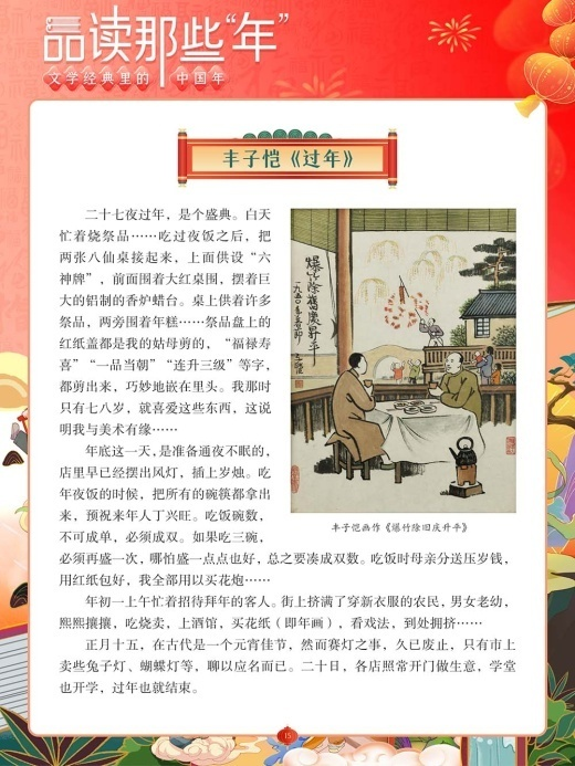 现在,让我们以鲁迅、老舍、林语堂、丰子恺、沈从文等大师为线索,通过大师们笔下生动的文字,品味字里行间流露出的真情实感,从而感受不同时期、不同区域、不同特色的中国年景。
