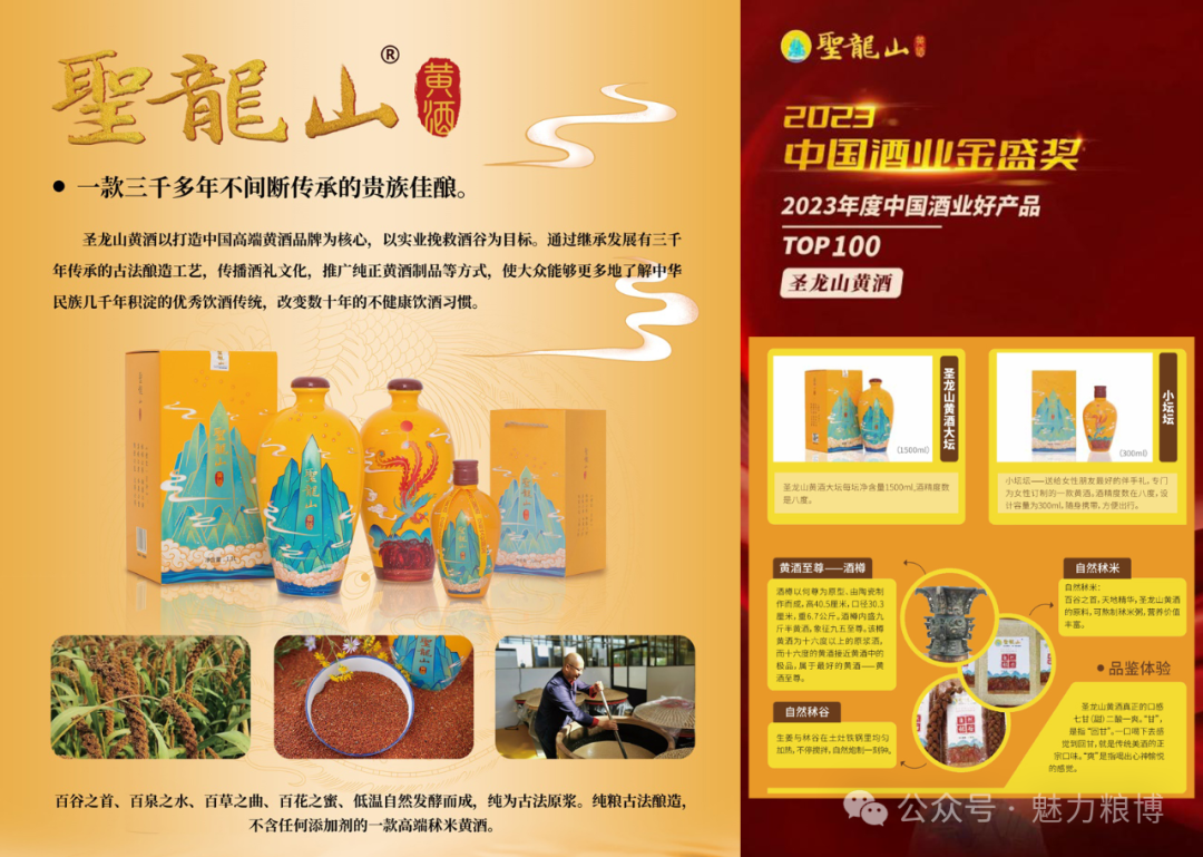2023年,7月5日,“2023中国酒业金盛奖颁奖盛典”在青岛举行。圣龙山黄酒凭借圣龙山黄酒凭借卓越的品质、独特醇厚的口感和传统的制作工艺一举斩获“2023年度中国酒业好产品Top100”,充分彰显了圣龙山黄酒的品牌实力。