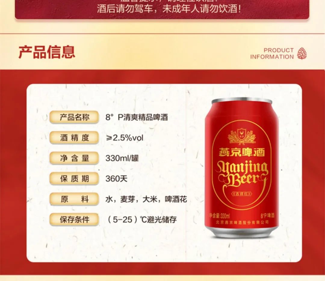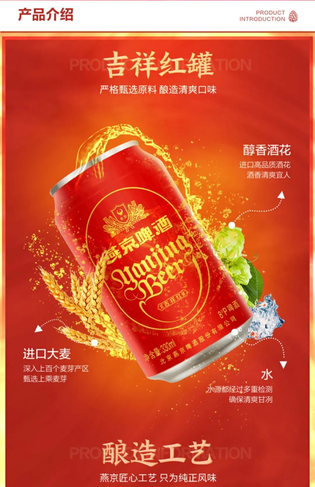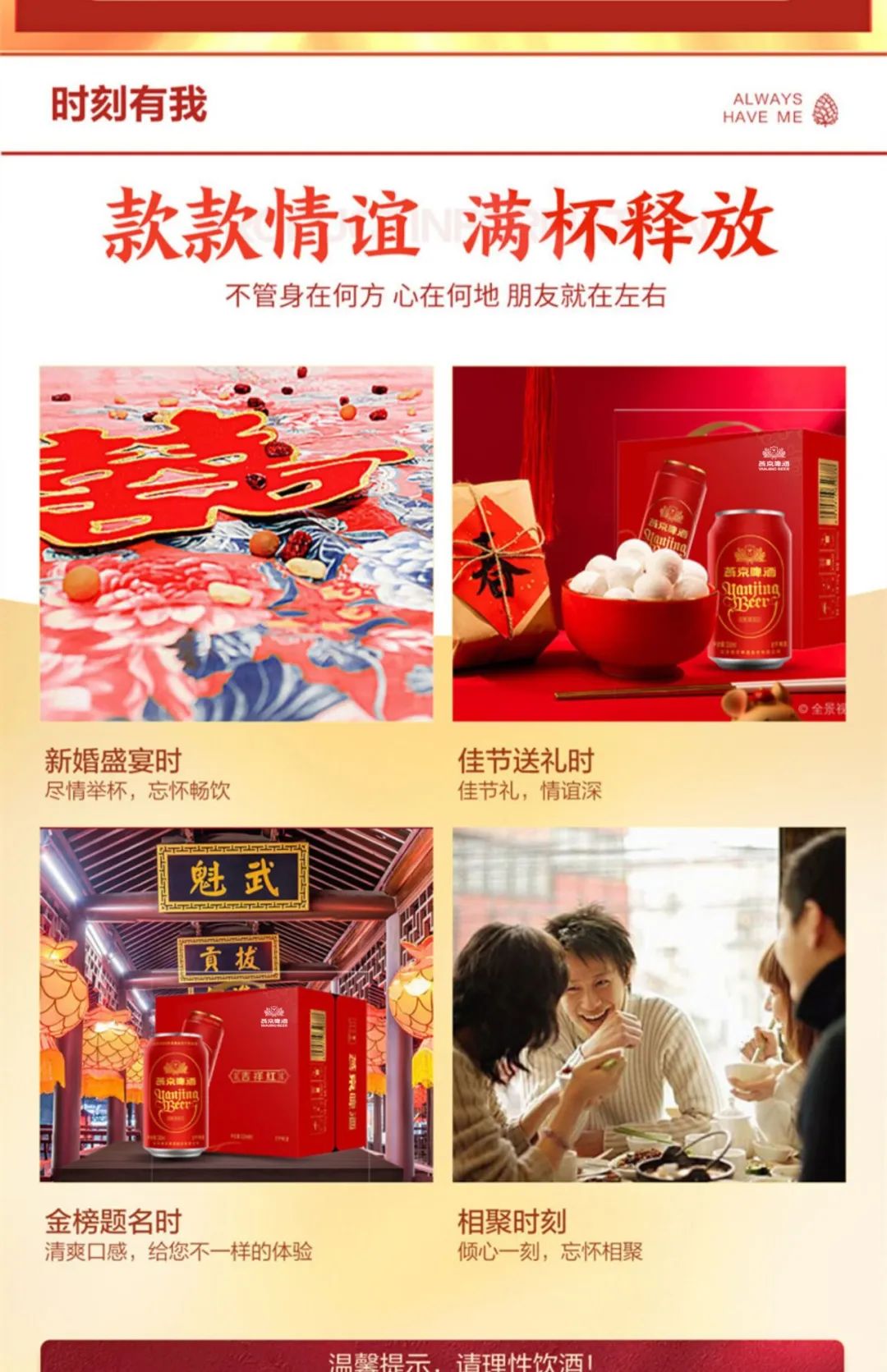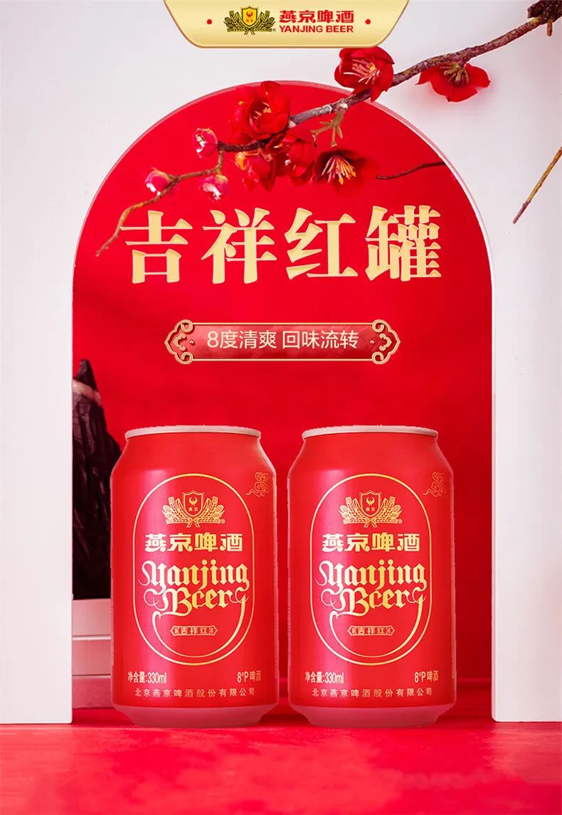 燕京啤酒 吉祥红8度啤酒330ml*24听 年货送礼 整箱装(红罐)