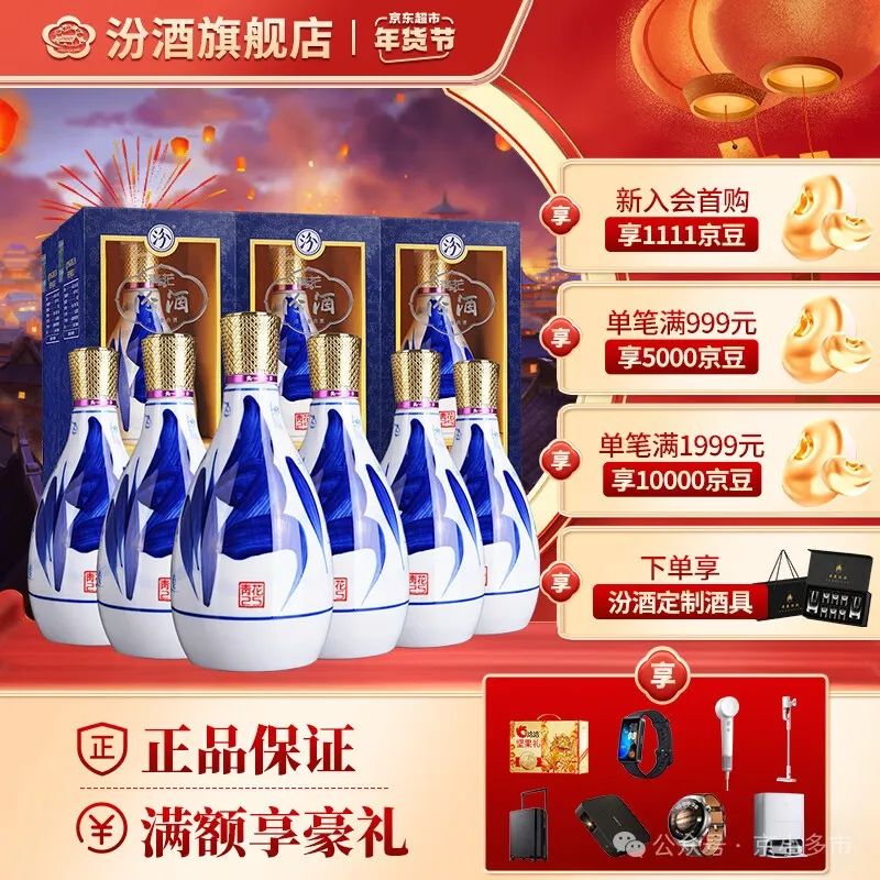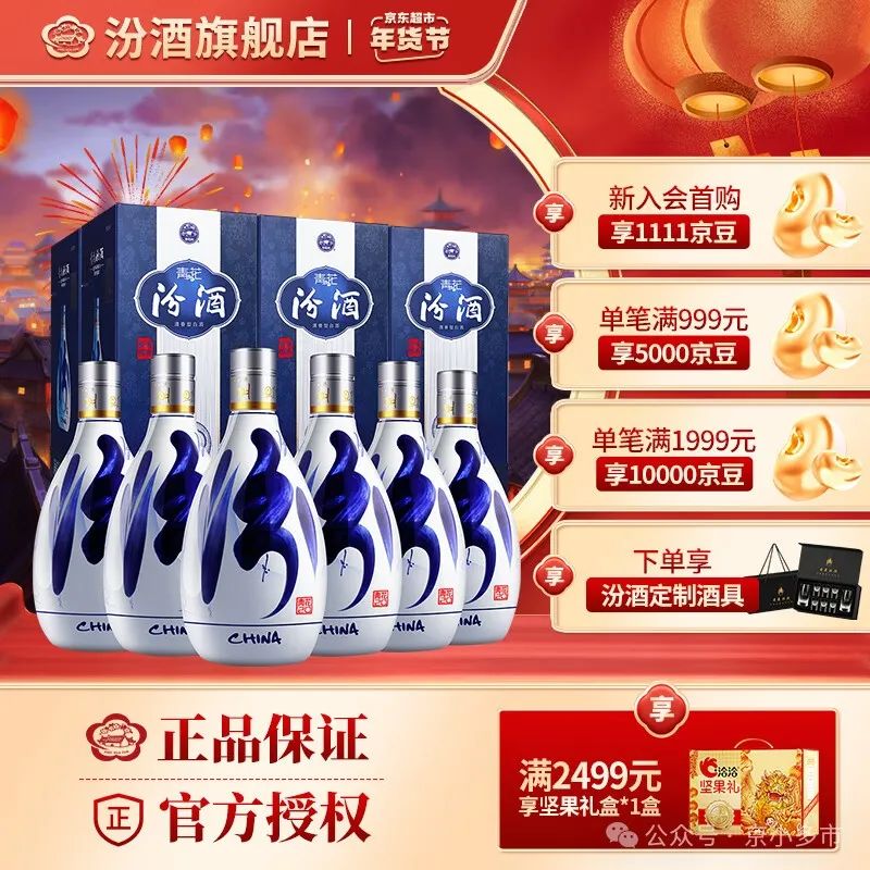 汾酒 蓝汾 清香型白酒 53度475ml*6瓶 整箱装(53度仿蓝瓷)年货送礼