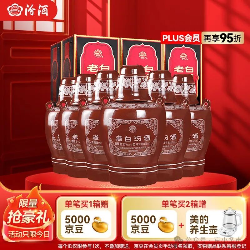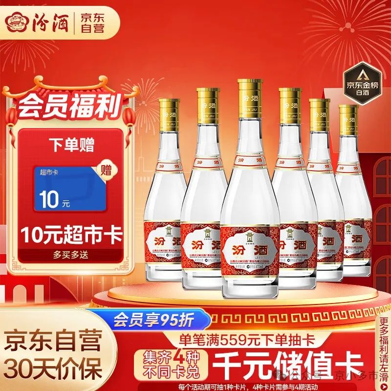 汾酒 老白汾10 清香型白酒 53度 475ml×6瓶 整箱装 年货送礼