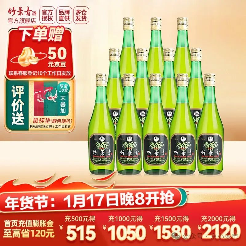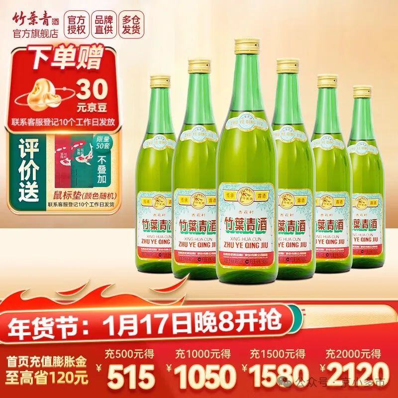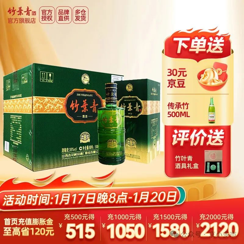 竹叶青酒 杏花村汾酒 露酒 金象竹 38度 500mL*6瓶 原箱 带礼袋年货送礼