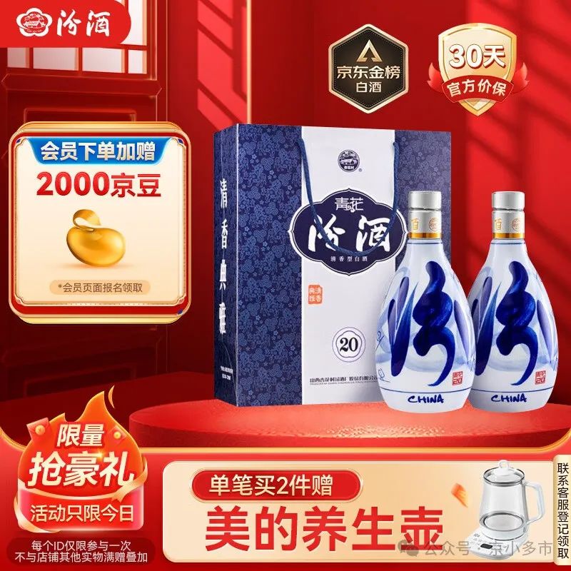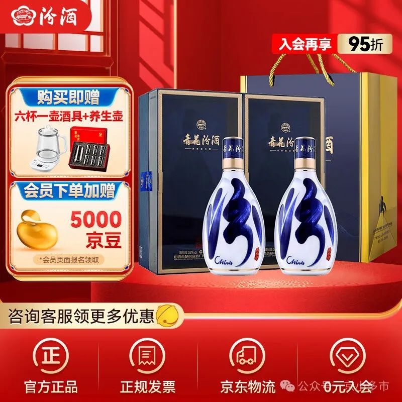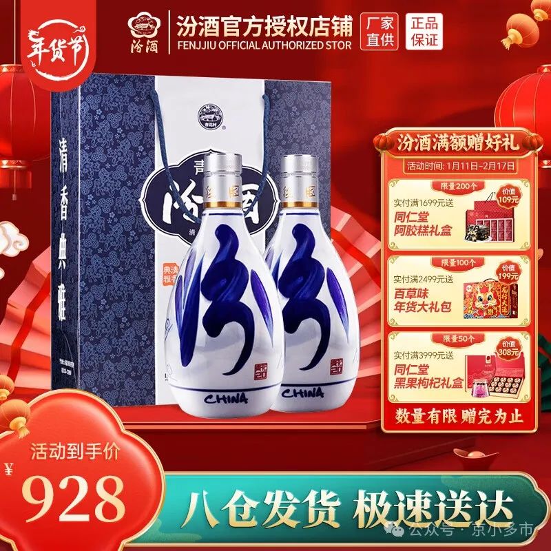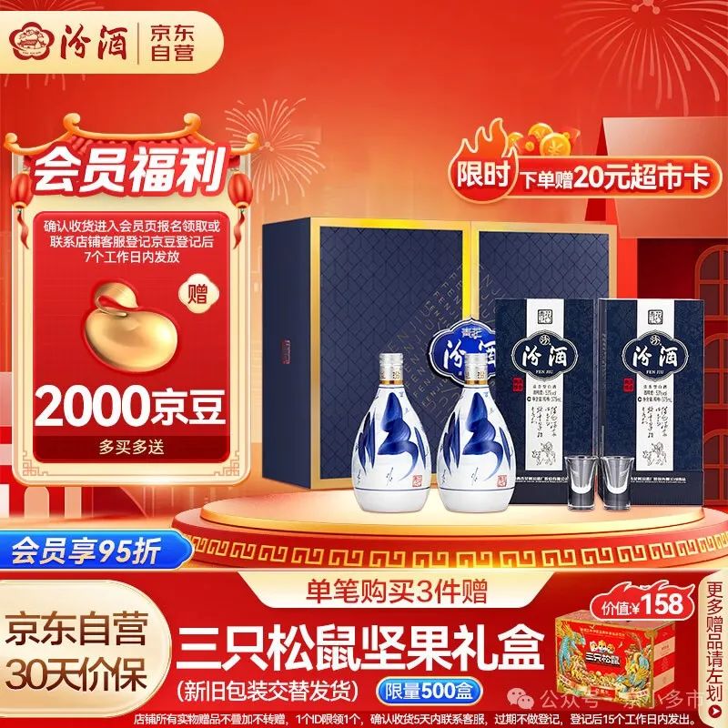 汾酒【年货送礼】【厂方运营】53度青花20汾酒500ml*2瓶 清香型 白酒 53%vol 500mL 2瓶 礼盒
