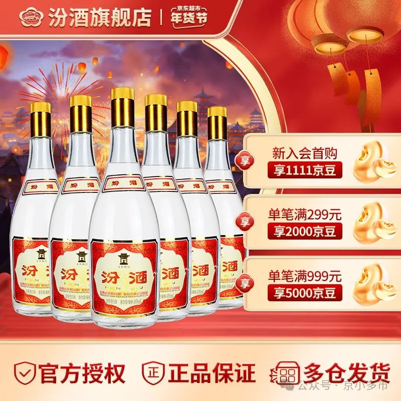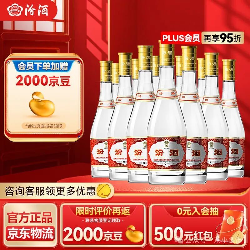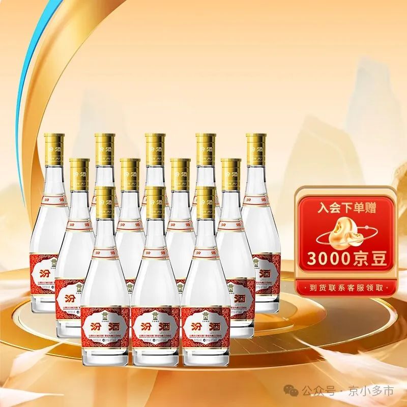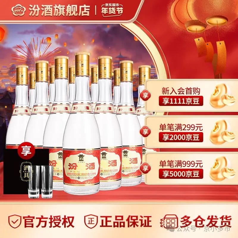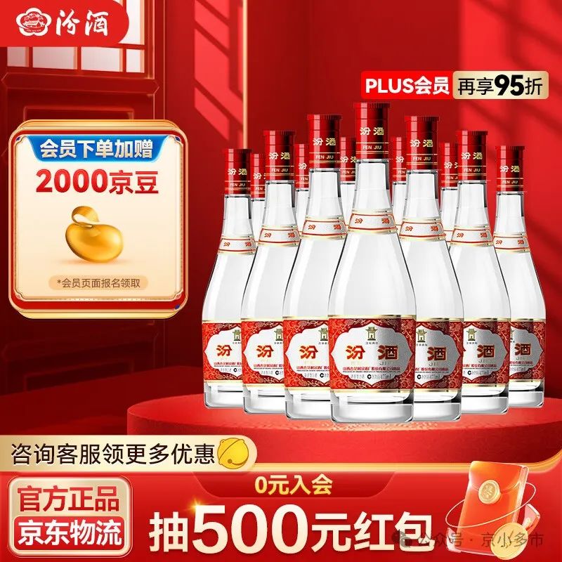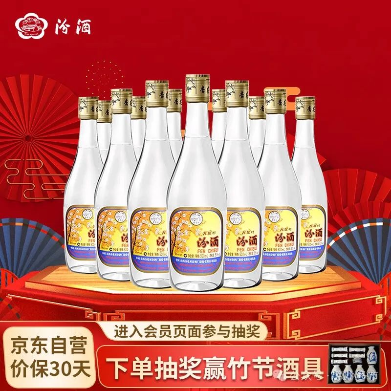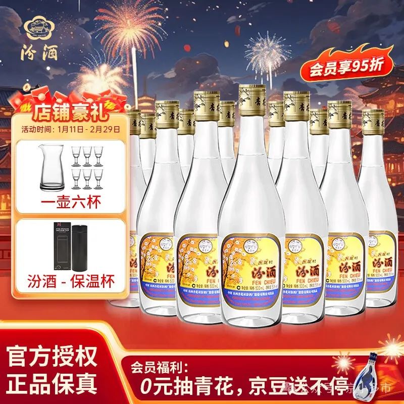 汾酒53度出口玻汾 清香型高度白酒 自饮口粮酒(非原箱) 500ml*12瓶装