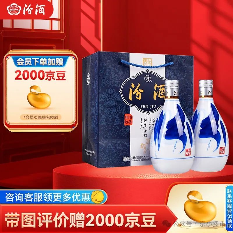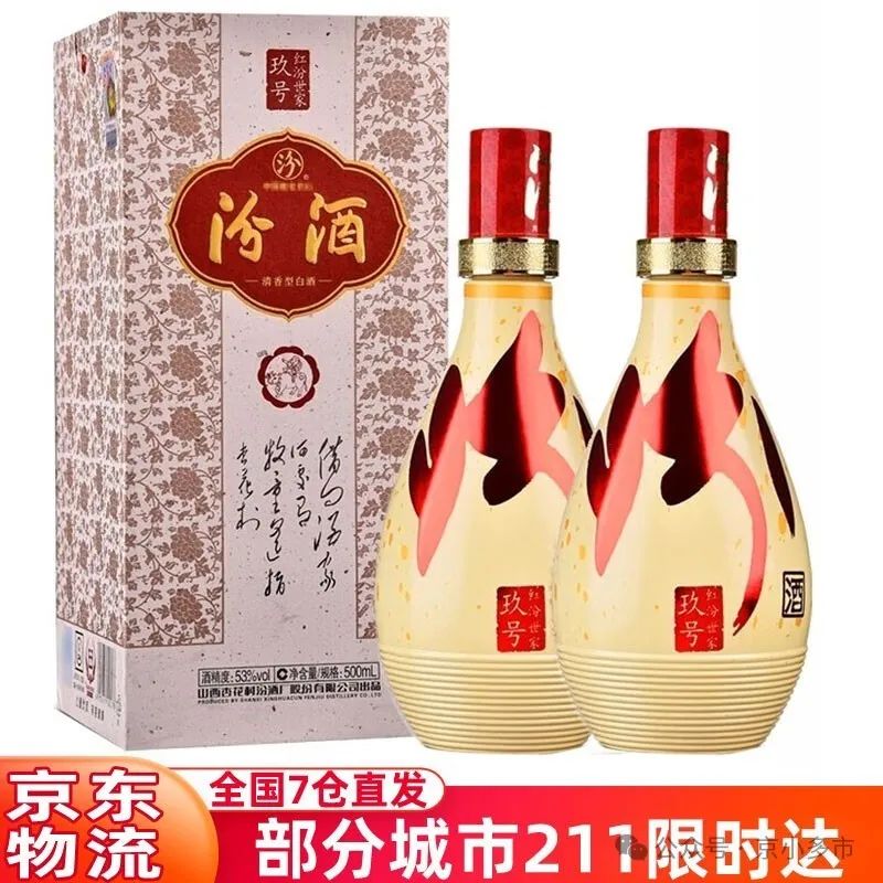 汾酒山西杏花村汾酒股份公司 53度清香型白酒 商务宴请送礼酒水礼盒装 53度 500mL 2瓶 汾酒