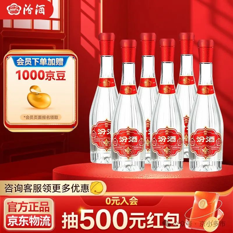 汾酒 献礼版玻汾 清香型白酒 53度 500mL 6瓶 整箱装