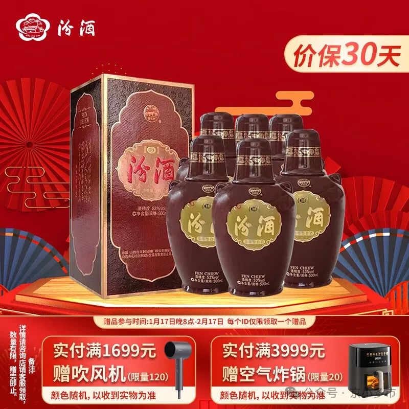 汾酒【厂方运营】山西汾酒杏花村酒53度青花20 500mL 53%vol 500mL 6瓶