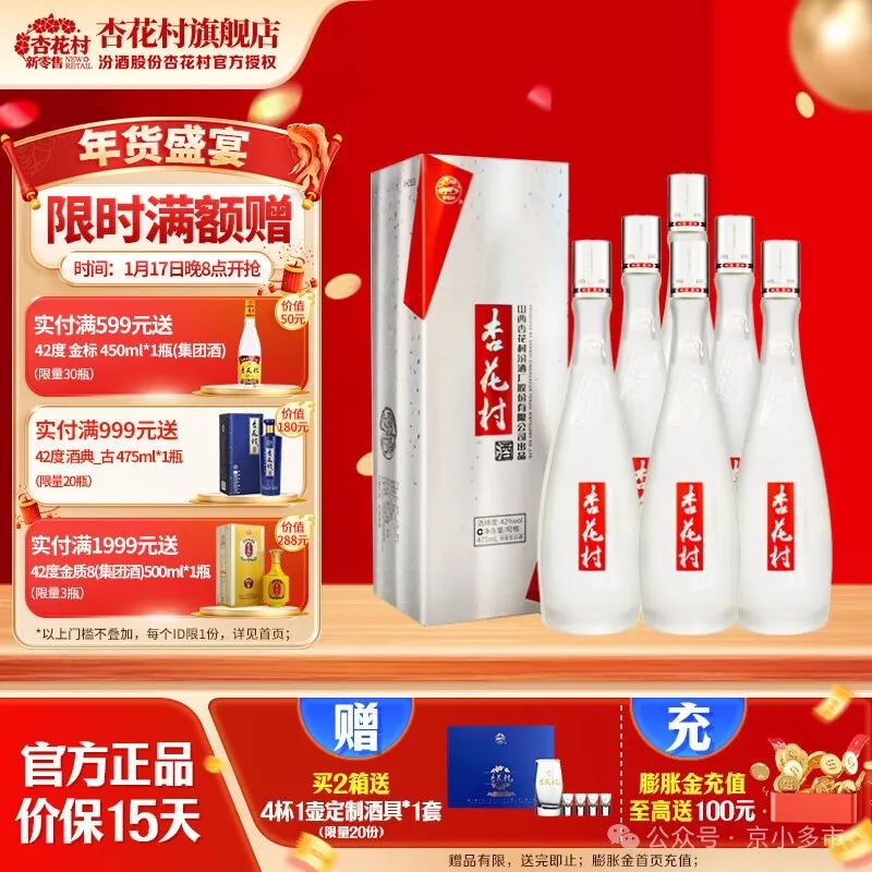 杏花村 汾酒 鲲鹏 清香型白酒 纯粮酿造 礼盒酒【年货节送礼】 42度 475mL 6瓶 整箱装