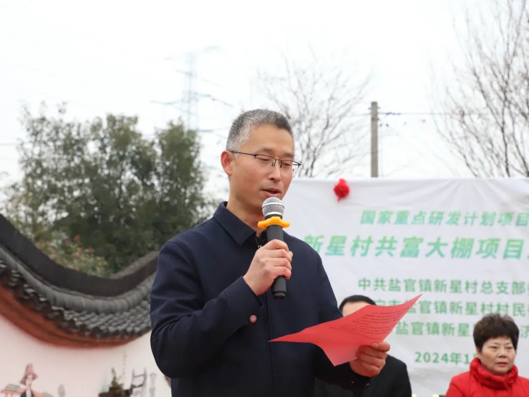 新星村党总支书记、村委会主任沈治国上台致辞,他首先向大家介绍本村多年以来深耕农业领域,以共富工坊为媒介,大力推广新型农业产业入驻,大力促进本村新型农业产业稳步发展,确保农民经济效益稳定增长,在乡村振兴和上级政策大力支持的背景下,推出新星村铁皮石斛农业共富大棚项目,从中引进先进的农业技术和管理模式,重点发展高效特色农业、生态观光农业和休闲体验农业,打造集种植、加工、销售、旅游为一体的石斛主题农业示范基地。
