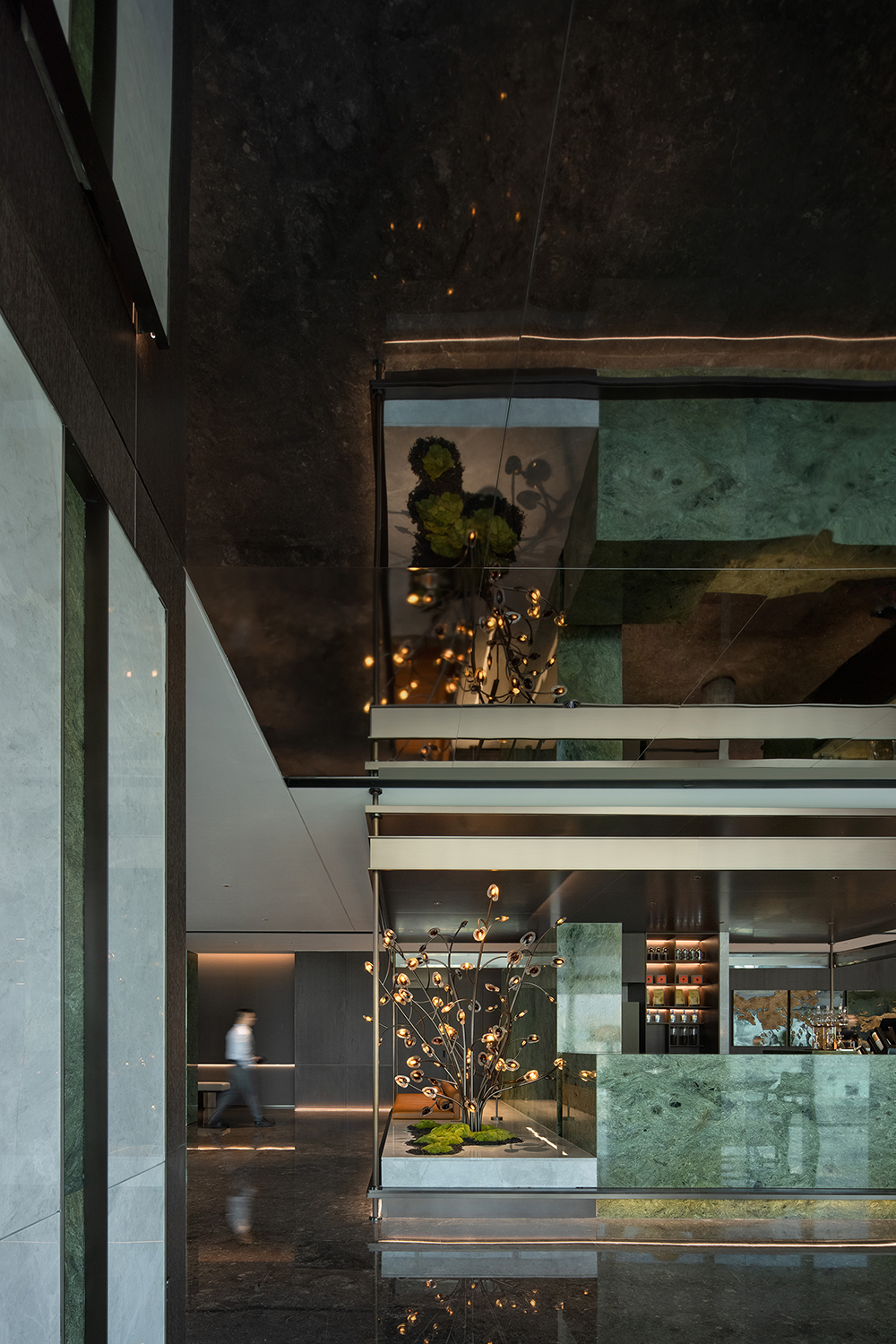 玻璃幕墙将环境与空间之间的界限消隐,以自然的辽阔之感回应品牌属性,将目光放远一点,再远一点,于未来、于自我、于世界之间。