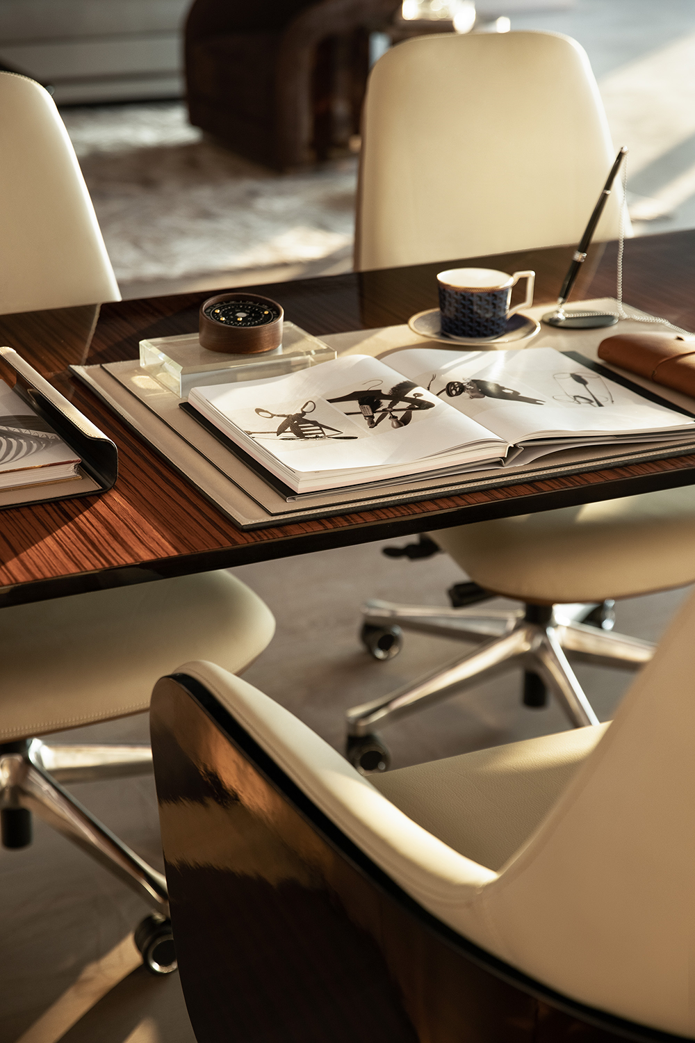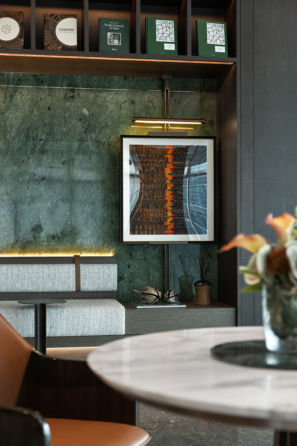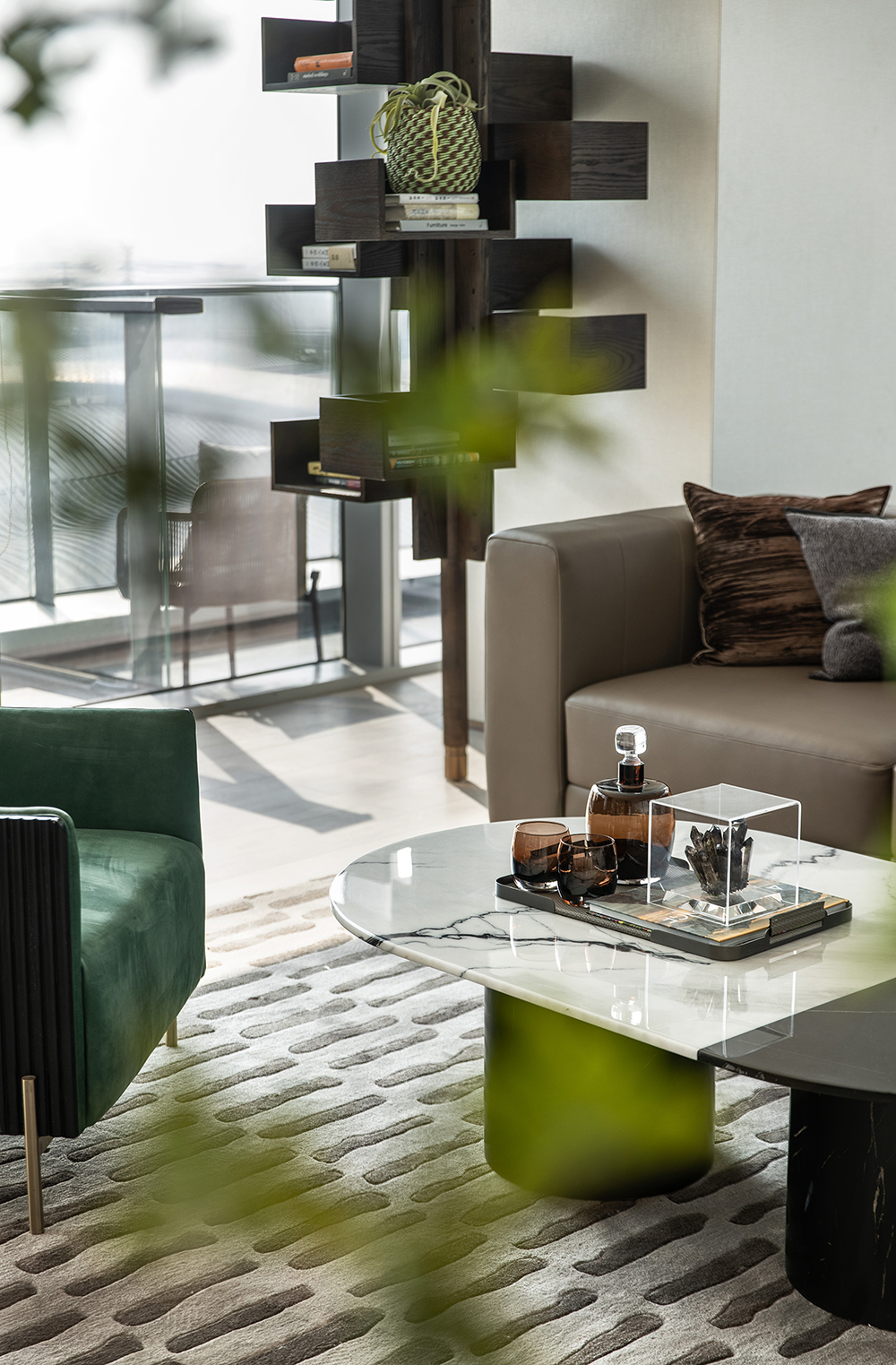 自由流淌的光,肆意洒落于桌几上,随着时间的变化进行移动,变为室内生动的景象。临景而坐,闲谈,观山海,感受四季的流转,享受静谧的都市休闲时光。