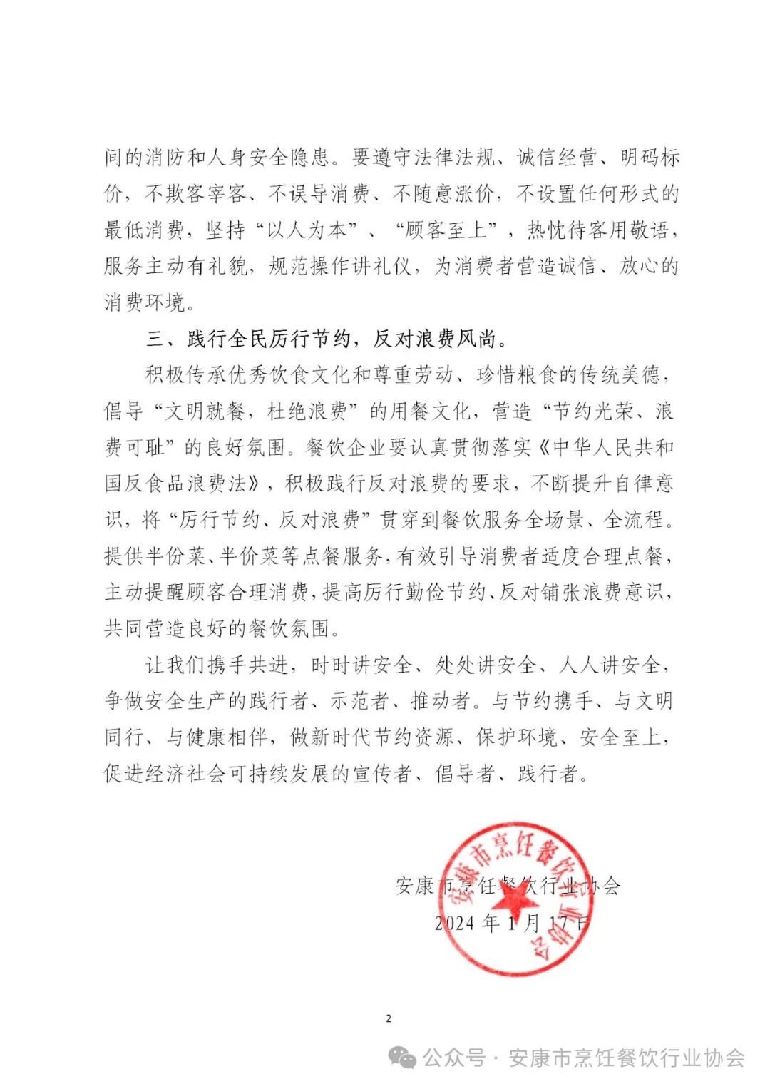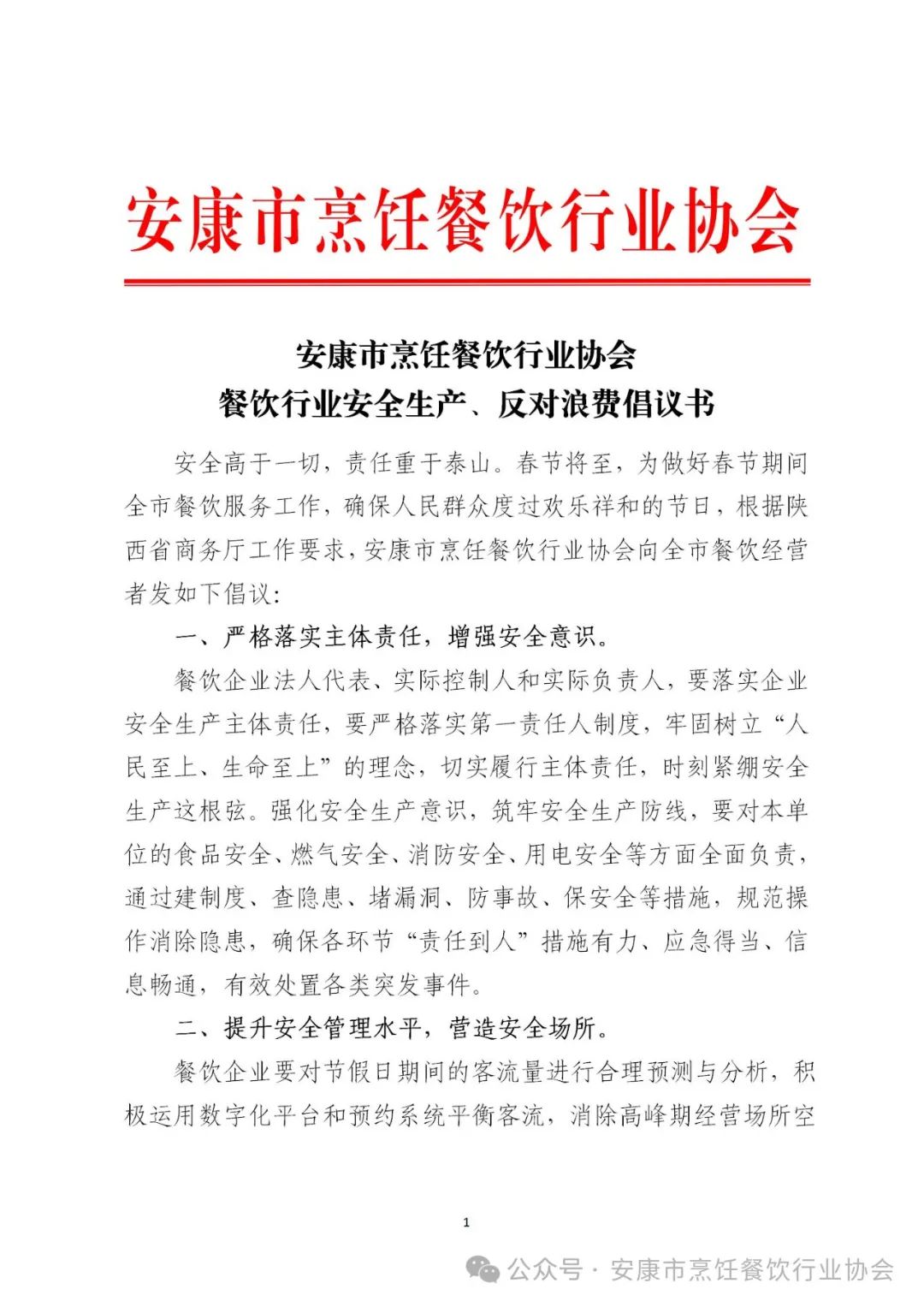 餐饮行业安全生产、反对浪费倡议书