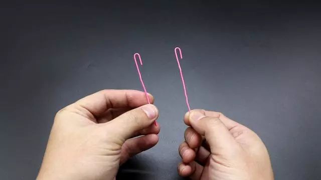 方法3::我们可以准备两根回形针,一定要用钢材质的,钢材质的回形针比较硬。然后我们把回形针做成两个钩子的形状,把带钩子的这一头从木塞的旁边塞进去,并把钩子固定在木塞底部,一边放上一个。