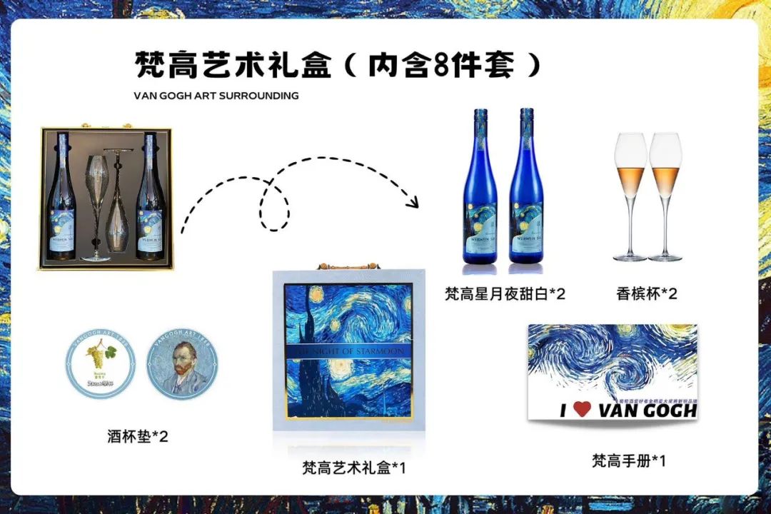 一整套大满贯=香槟杯*2+梵高手册*1+酒杯垫*2+德国雷司令甜白*2+梵高艺术礼盒*1
