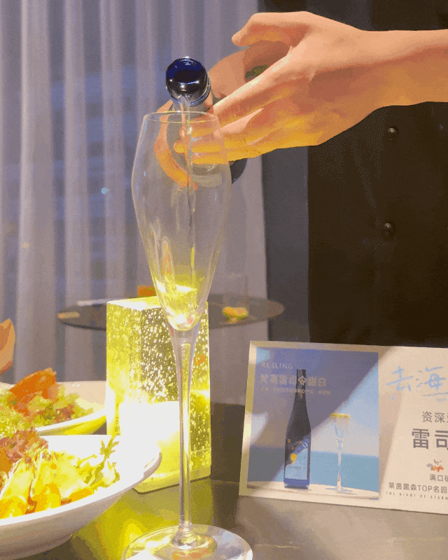晚宴时,她细品了一口「雷司令白葡萄酒」后,惊叹连连,如获至宝~