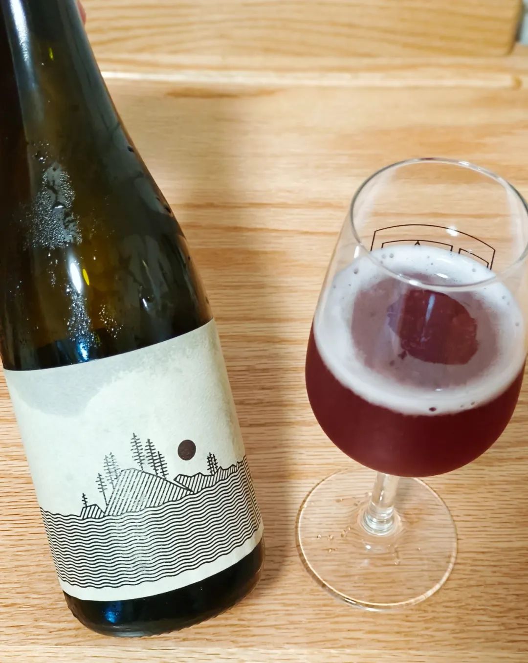 这款酒在橡木桶陈9个月的艾尔基酒中,投放整串西拉葡萄,再自然发酵9个月,得到一款非常具有葡萄兰比克风味的桶陈野菌!倒杯,紫红色酒体,漂亮的红葡萄酒颜色,轻微浑浊,泡沫丰富消散慢,且持久。入口,浓郁清新的葡萄浆果香气、蓝莓香气,鲜榨果汁般新鲜浆果气息,扑面而来;然后底层的野菌香气逐渐浮现,泥土、青草、树根、草本的香气,野菌不腐臭,但“野”得很沉、很重,树林深处黑色阴翳的感受。沙口感一般,酸得柔和舒服,口感清爽、甘冽。中段,橡木桶香气,青草、野花香气,那种带红色野果子的野花,香气和酸感逐步减弱。整个品饮过程,一半激情的葡萄酒,一半啤酒收尾;9%酒精藏得非常好,不知不觉微醺。整体上,这款酒令我想到康帝隆·紫葡萄兰比克,葡萄风味的融合十分惊喜!前半段完全是西拉红葡萄酒体现,单宁低,浓郁饱满的葡萄浆果香气、蓝莓香气;底层野菌香气像一条稳重的基带,提供草本、泥土、青草的野趣。后半段有点水啤的“一泻千里”,味道集中、不散,但香气衰减非常快。能联想到康帝隆·紫葡萄,这款酒已然成功。相似之处在于,葡萄浆果香气的新鲜、浓度最大可能保留。区别在于,葡萄兰比克野菌香气的幽深、深厚,像一条永不歇止的涓涓细流;费尔岛西拉的结构、香气层次相较单薄,葡萄酒的冲击都在前半段。欢迎关注杰森,和杰森一起完成「200款高分精酿测评」计划~