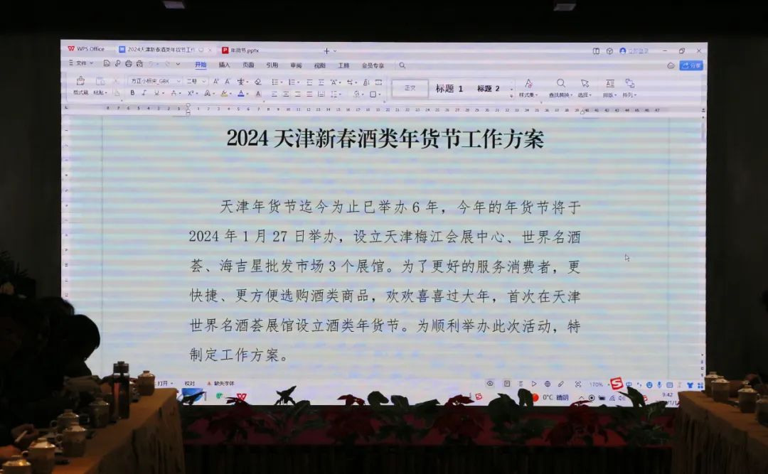 在天津市商务局、河东区人民政府、天津市消费流通促进会的关心和大力支持下,“2024天津新春年货节---酒类展馆”将于2024年1月27日隆重开幕。为了更好的服务消费者,更快捷、更方便选购酒类商品,欢欢喜喜过大年,本次天津新春年货节在天津市世界名酒荟特设酒类展馆,以“放心酒、健康饮、庆团圆”为酒类展馆特色,展厅面积8000平方米,50个展位,集结了全国名优酒水品牌,全国传统老字号,天津土特产等。为了成功举办此次展会,丰富老百姓春节餐桌,把美酒、美食和美好的祝福送给大家,协会于日前召开了酒类展馆筹备会。