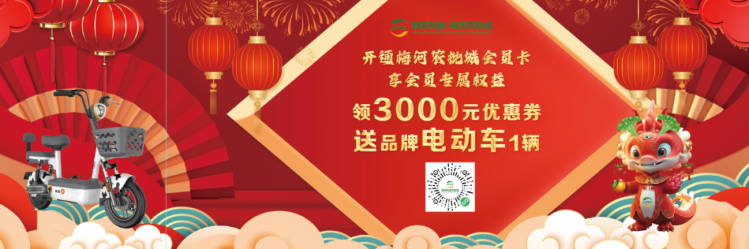 不论您是当地市民百姓,还是来梅游客朋友,或是农副产品经营户、果蔬超市经营商、餐饮商家等对农产品采购需求量比较大的经营户,均可参与本次惠民福利活动,除领取电动车以外,还可以领取3000元优惠券,可在农批城开业后享受购物优惠。