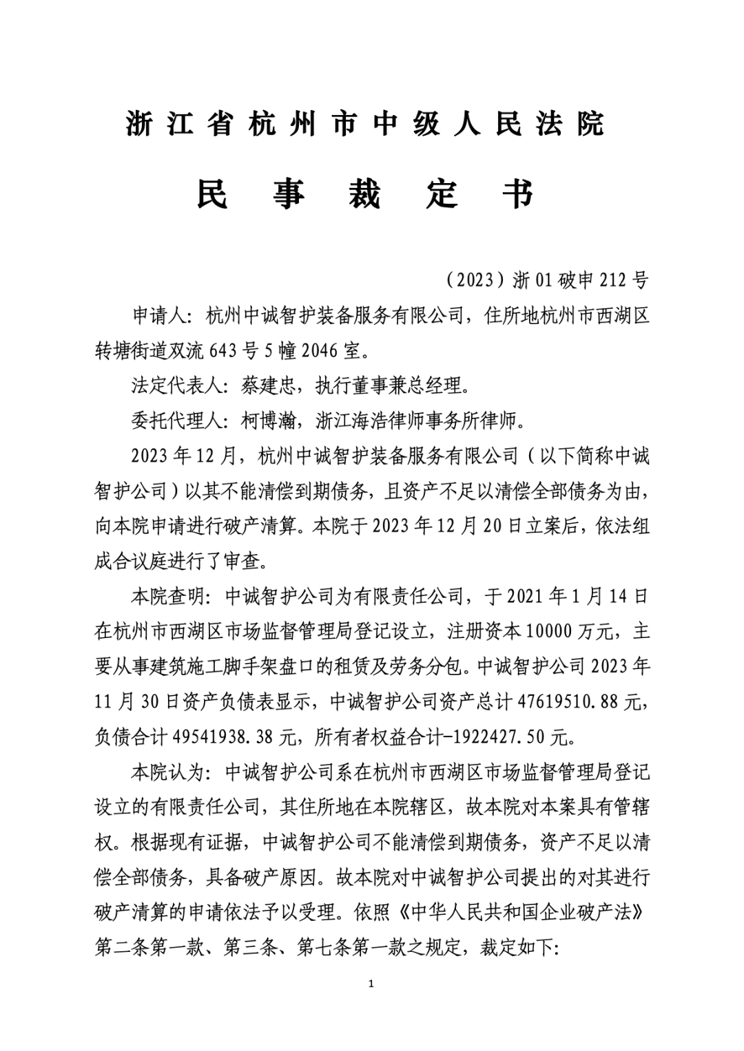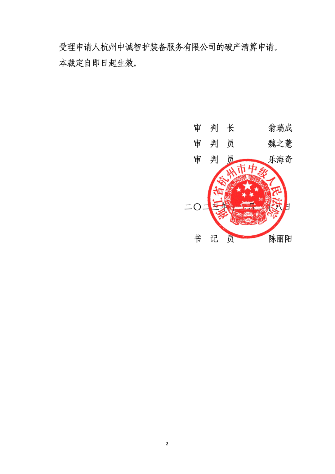 杭州中诚装备服务股份有限公司破产管理人公众号