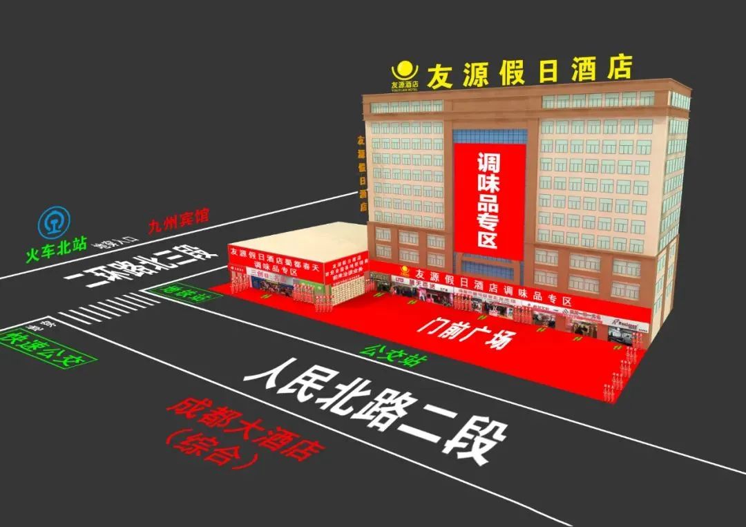 成都友源假日酒店位于火车北站(地铁C出口)。酒店展厅面积6000余平米,展厅方正宽敞,有四个步行梯,两个手扶电梯,五个电梯,是成都春糖调味品标杆布展酒店。 其中展厅面积从10多平米到100平方米不等,更适合厂家有效的选择适合自己的展位。