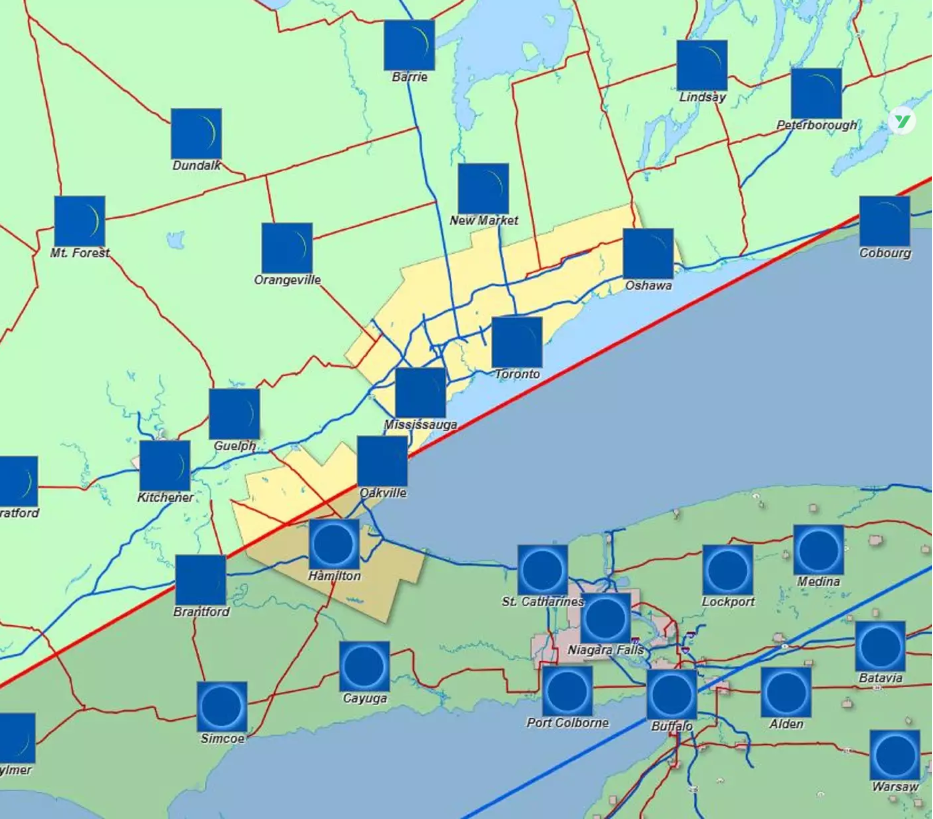 2024年4月,一场罕见的日全食将使北美上空的正午天空变得漆黑,这为在安省目睹绚丽火环提供了千载难逢的机会。2024年4月8日,当经过太阳和地球之间时,月球将遮住太阳的表面。日全食将出现在北美天空,并在中午创造出黄昏或黎明的感觉。据美国宇航局称,日食每年大约发生两到四次。美国航天局表示,日全食覆盖的地面区域只有约80公里宽,特定区域可能每隔百年左右才会出现一次全覆盖。幸运的是,即将到来的2024年春季日食将在加拿大人口最多的地区绽放光芒,当4月8日下午3:20左右,月亮遮住太阳光线时,许多安省南部的居民将在完美的位置观看日全食。虽然多伦多的观看条件将达到接近日全食的程度,但该地区的其他地区,如汉密尔顿和尼亚加拉瀑布,将经历真正的日全食,包括与这些事件相关的罕见的“火环”。图源:https://eclipse2024.org/上一次全省变暗是在1979年2月26日,当时安省北部的部分地区因月球在太阳和地球之间运行而短暂变黑。在你开始凝视天空或将相机对准日食之前,专家警告说,如果不使用专为日光观察而设计的护目镜,直接观看太阳是不安全的。美国宇航局建议业余日食观察者佩戴广泛使用的专用“日食眼镜”或使用针孔投影仪等间接方法来防止眼睛受损。https://www.blogto.com/city/2024/01/ontario-total-solar-eclipse-2024-ring-fire/