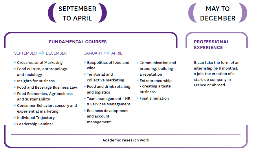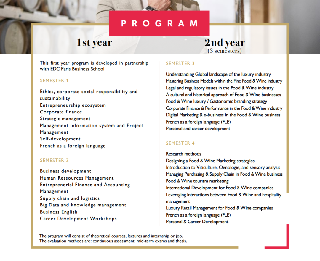 将所有必要的技能传授给未来在法国和国外营销、销售和分销这些高端产品的专业人士。